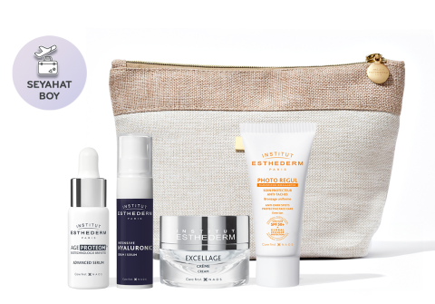 Ciltteki kuruluk, ince çizgi ve leke görünümünü hedefleyerek; nemlendiren, sıkılaştıran ve güneşten koruyan 4’lü bakım seti.